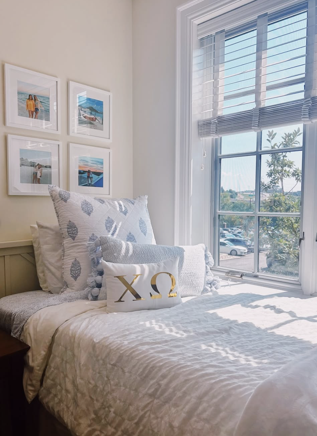 Our great room serves as the main living space in the house! This is the perfect space for our sisters to hang out with friends, study, and relax. This space also features our fireplace.